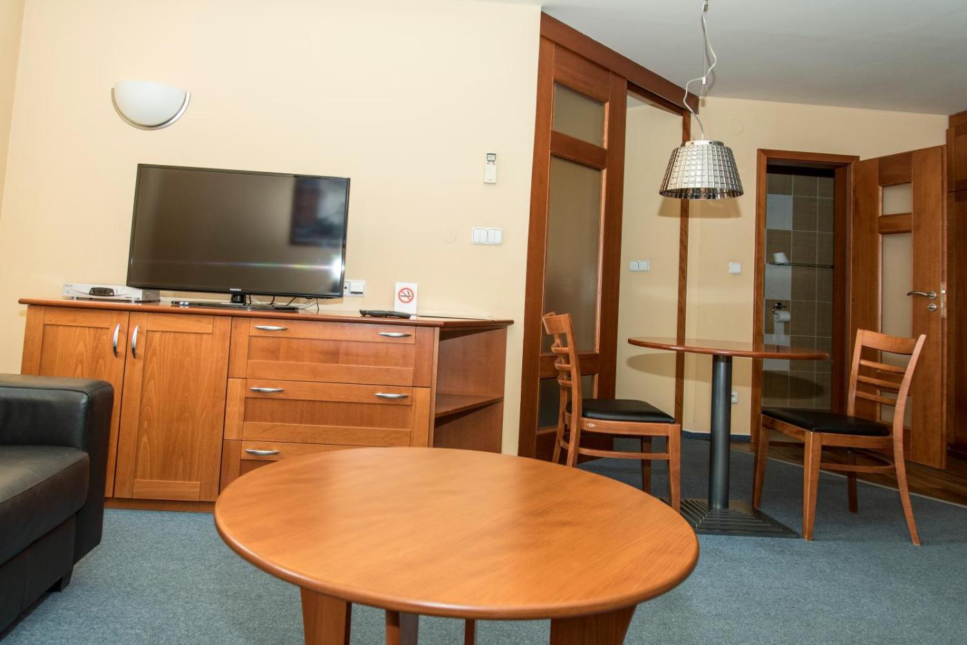 The rooms at the Zelená Žába are non-smoking and come with air conditioning, a TV with satellite channels and a private bathroom. The studios and apartments also feature a fully equipped kitchen.